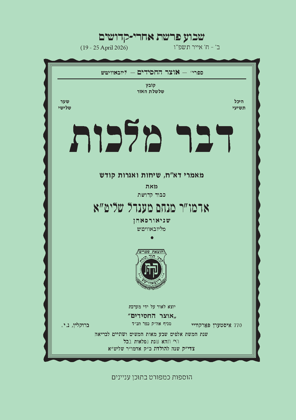 Acharei-Kedoshim – Dvar Malchus All Categories Chayenu Chayenu 3 Dvar Malchus Cart $2.75 In stock Acharei-Kedoshim - Dvar Malchus quantity Add to cart Related products Emor – Dvar Malchus $2.75 Add to cart Emor - Dvar Malchus quantity Pesach – Dvar Malchus $2.75 Add to cart Pesach - Dvar Malchus quantity Shemini – Dvar Malchus $2.75 Add to cart Shemini - Dvar Malchus quantity Tazria-Metzora – Dvar Malchus $2.75 Add to cart Tazria-Metzora - Dvar Malchus quantity